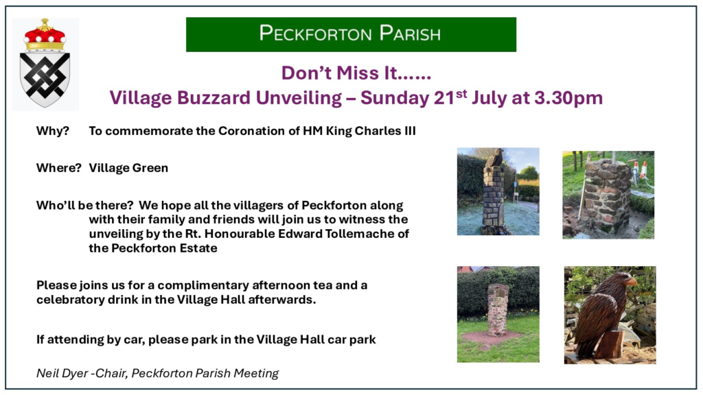 Follow this link to some great pictures of the unveiling of the Buzzard https://www.peckfortonparish.org.uk/pbvh/buzzard/